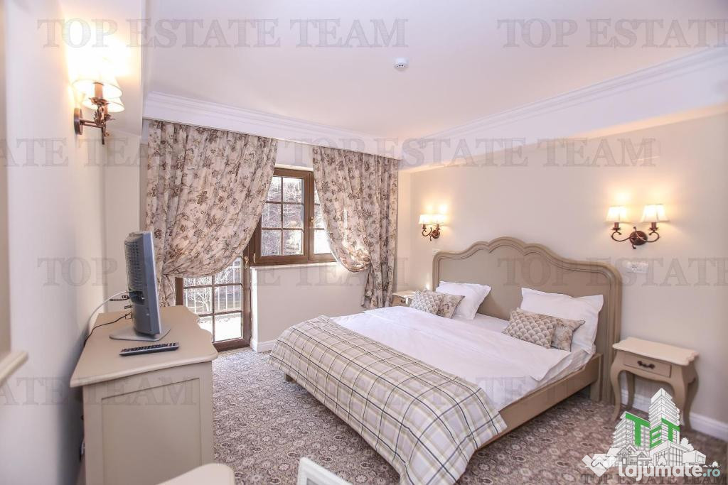 Pensiune moderna de 4*, situata in Baile Herculane, ideala pentru investitori in turism. Proprietatea este formata din doua loturi de teren cu o suprafata totala de 6.144 mp, cu deschidere generoasa de peste 150 m la drumul principal. Cladirea are regim de inaltime D P 2E M si o arie utila de aproximativ 1.093 mp, cu 26 camere, spatii tehnice, receptie si zone comune. Finisajele sunt de nivel mediu, iar etajul 2 si mansarda sunt in curs de finalizare, oferind potential suplimentar de dezvoltare.Proprietatea include o anexa de 69 mp si o terasa acoperita de 166 mp, utile pentru extinderea serviciilor (restaurant, evenimente, zona de relaxare). Terenul este amenajat cu alei auto si pietonale, iar zona beneficiaza de acces usor, utilitati complete (apa, canalizare, electricitate, centrala pe peleti) si proximitate fata de principalele puncte de interes ale statiunii.