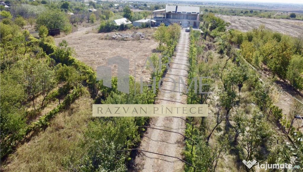 Accesul pe proprietate se face pe un drum privat, parte din proprietate, oferind totodata intimitate si siguranta. Deschiderea acestuia este de 76,3 ml in partea frontala si 84,92 ml in partea din spate, conturand un perimetru ideal.