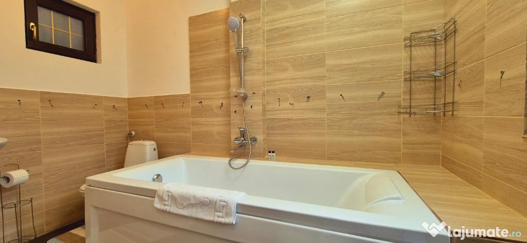 În sala de spa regăsim un Hydropool (Canada), utilizat pentru cromohidroterapie. Terasele exterioare generoase si logii.