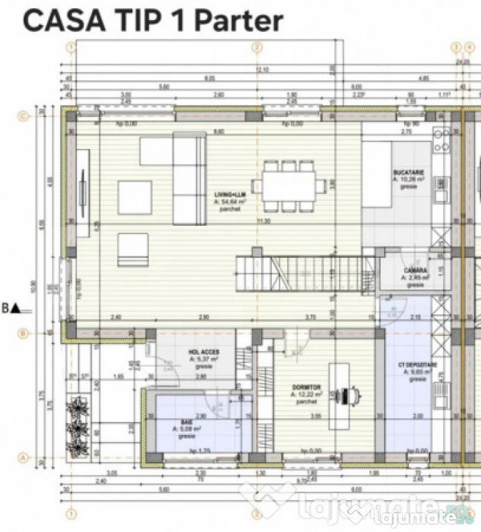 Parter: Living openspace cu bucataria, extralarge..., baie, camara, dormitor/birou, camera tehnica pt uscare haine, lavanderie.