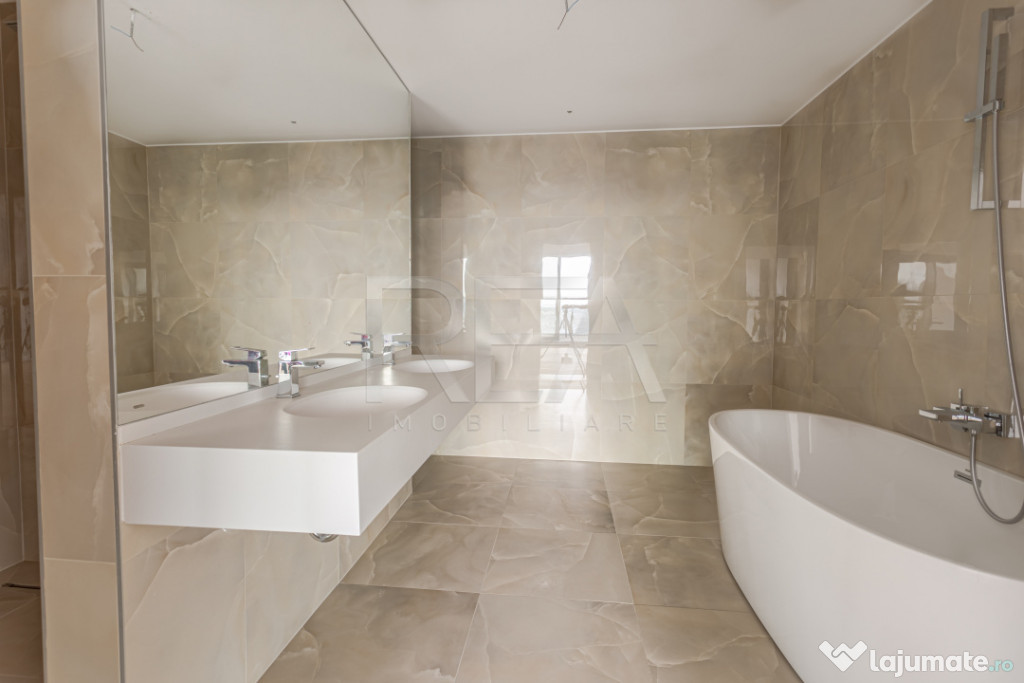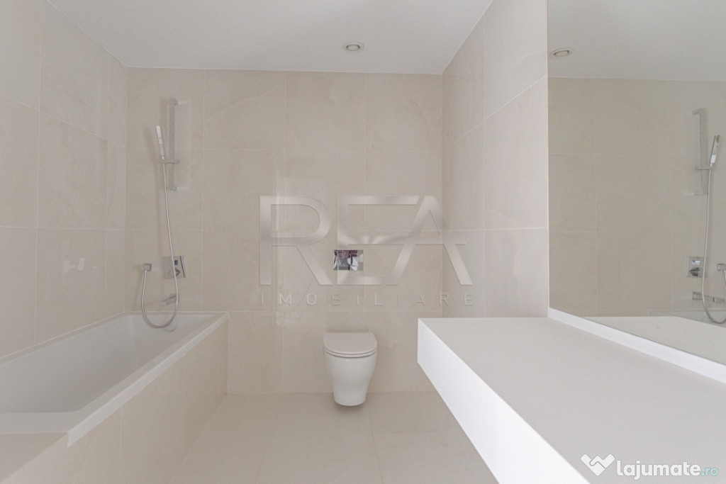 - Trei băi elegante, amenajate cu materiale de top, design contemporan și detalii rafinate;