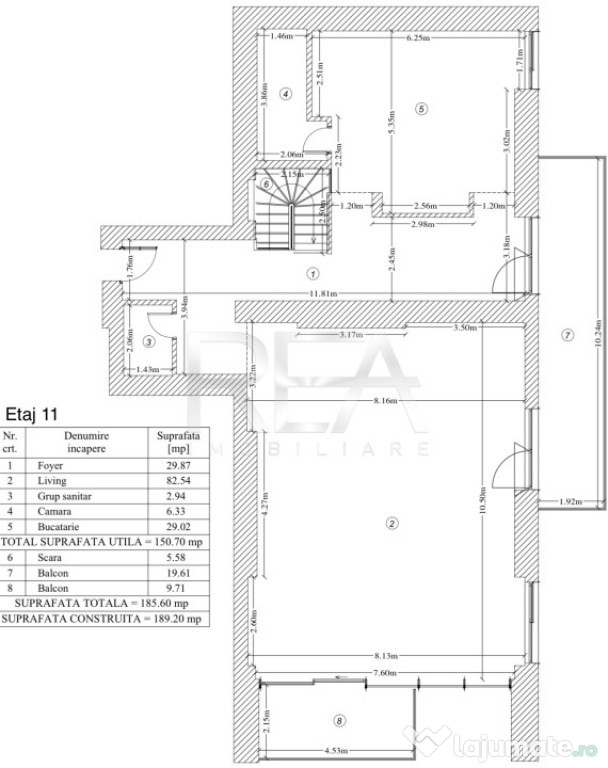 - Suprafață utilă de 301,21 mp, completată de trei balcoane generoase și o terasă spectaculoasă, pentru un total de 372,84 mp;