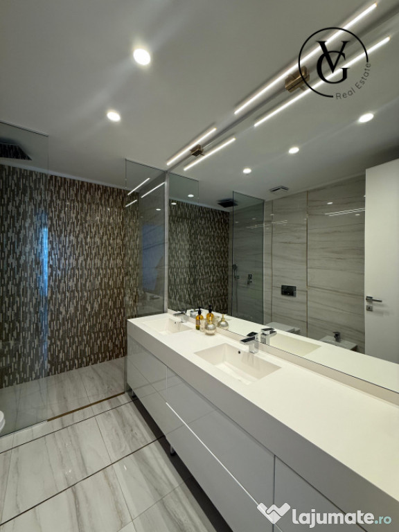 Bucurați-vă de spațiile generoase și finisajele premium ale acestui duplex. Terasele de 170 mp oferă priveliști panoramice și sunt perfecte pentru relaxare și divertisment. În plus, jacuzzi-ul privat de pe terasa principală adaugă o notă de rafinament și răsfăț.