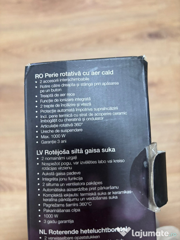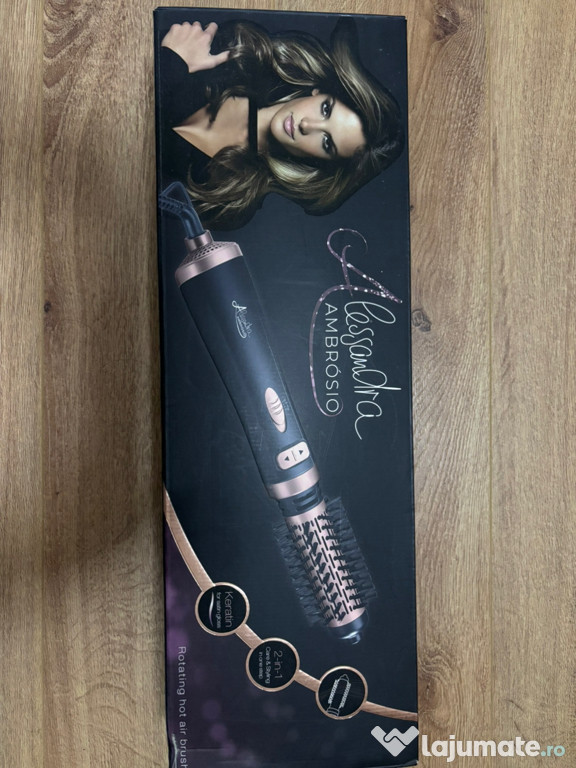 Vand perie rotativa cu aer cald cu 2 accesorii interschimbabile. Include perie termica cu strat de ac ...