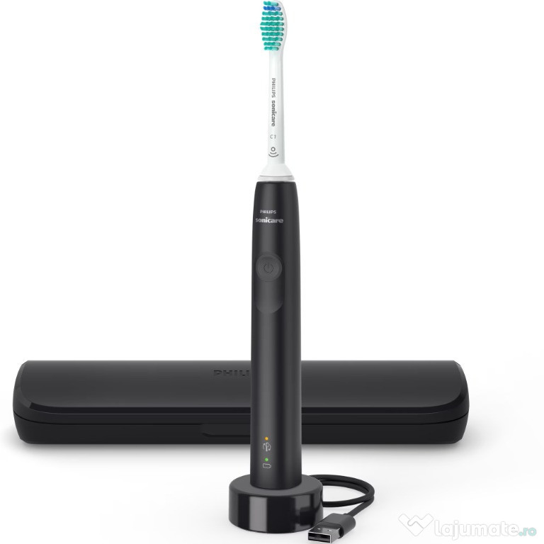 Periuta de dinti sonica Philips Sonicare seria 3100 HX3673/14, 31000 miscari/minut, 1 mod curatare, senzor presiune, functia BrushSync, culoare neagra.