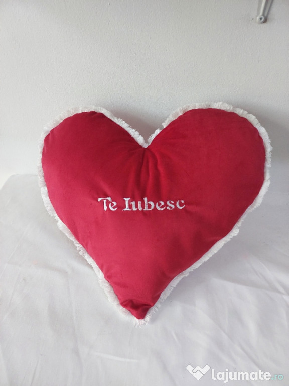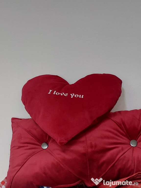 Perne de catifea in forma de inima brodate cu mesaj de Sfântul Valentin. Perne decorative de culoare roșie, cu mesaje sau Nume personalizate brodate pe ele, perfecte pentru a oferi cadou de Ziua Îndrăgostiților.Anuntul Perne din catifea brodate cu mesaj de Sf Valentin's day este adaugat de pe LaJumate.ro.