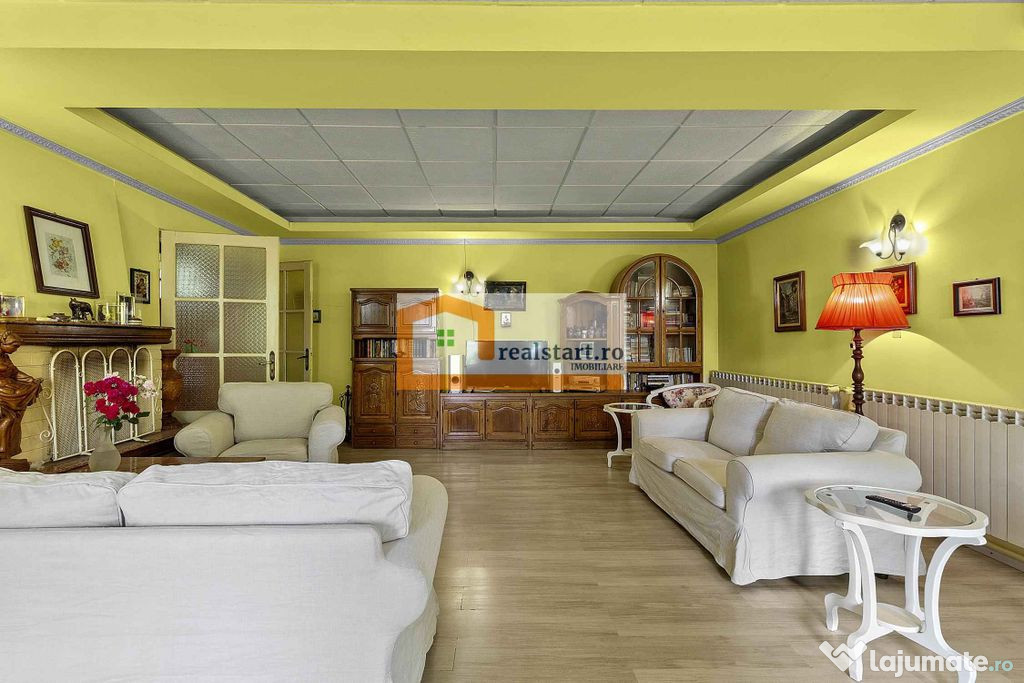 - zona de living se bucura de un semineu cochet, zona de canepele si o zona vitrata mare, catre terasa, ce asigura o priveliste frumoasa indiferent de anotimp.