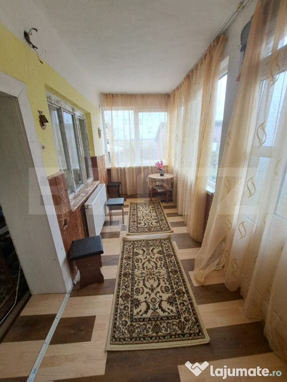 Imobilul are aproximativ 100 m² utili, construcție din cărămidă, cu geamuri termopan și centrală proprie.