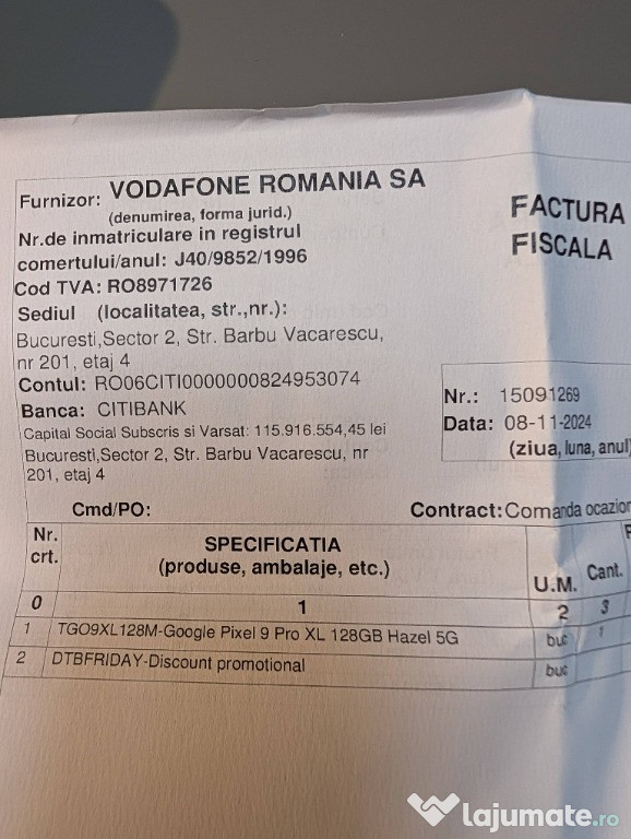 Garanție: Mai are 12 luni de garanție valabilă la Vodafone România.
