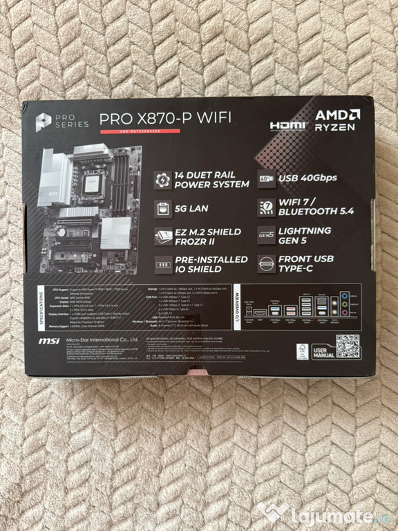 Placa de baza MSI PRO X870-P, nouă, sigilată, cu chipset AM5 și suport DDR5.Placa are de altfel: