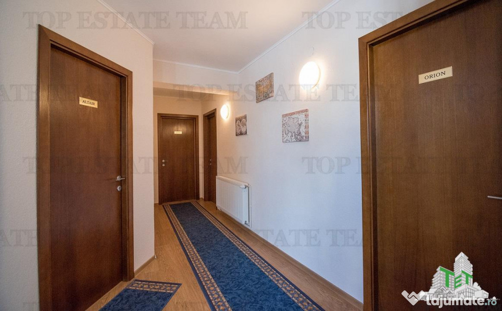 - ETAJUL dispune de 3 camere cu bai proprii si balcoane, plus un apartament cu living, dormitor, baie si balcon.
