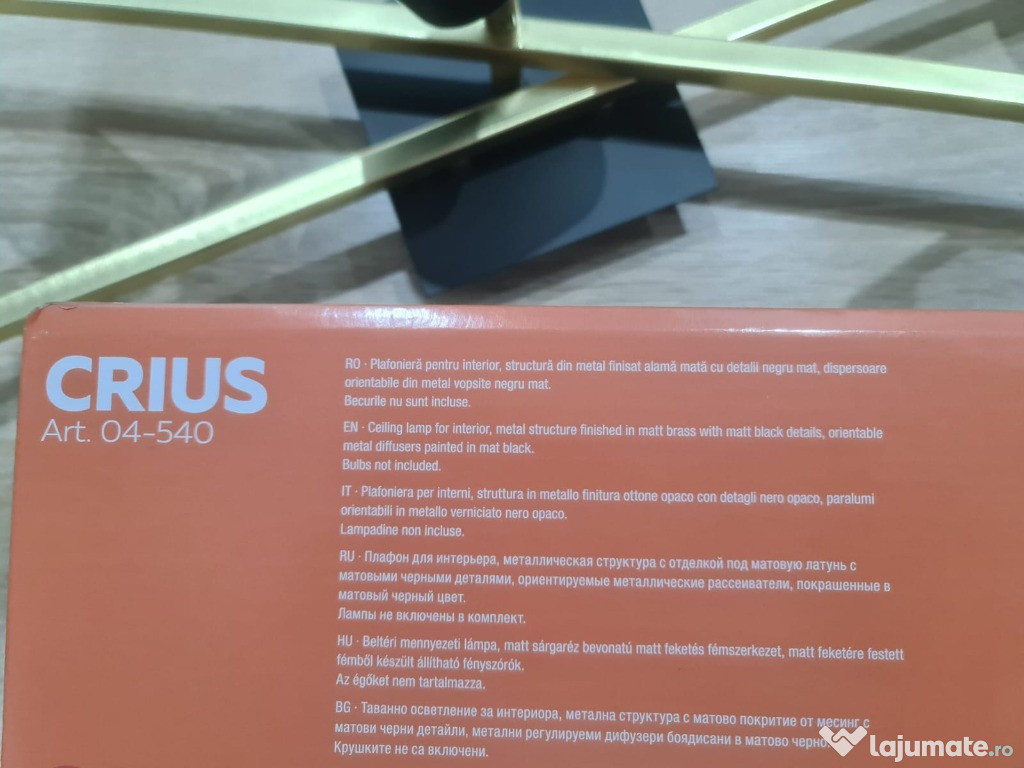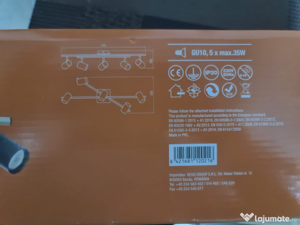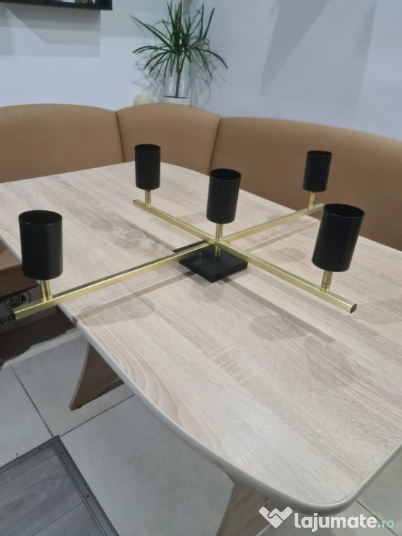 Plafoniera moderna de interior, cu cinci dispersoare negre mobile, structura din metal, aurie. Produsul este nou, in cutie. Dispun de mai multe bucati.Anuntul Plafoniera moderna este adaugat de pe LaJumate.ro.