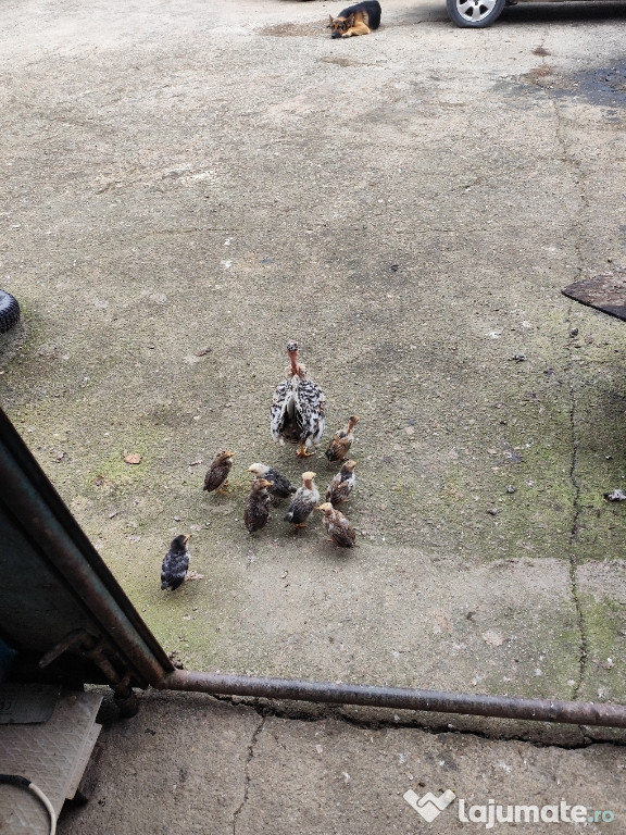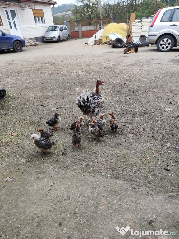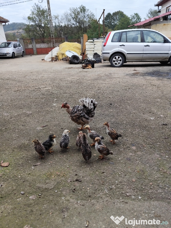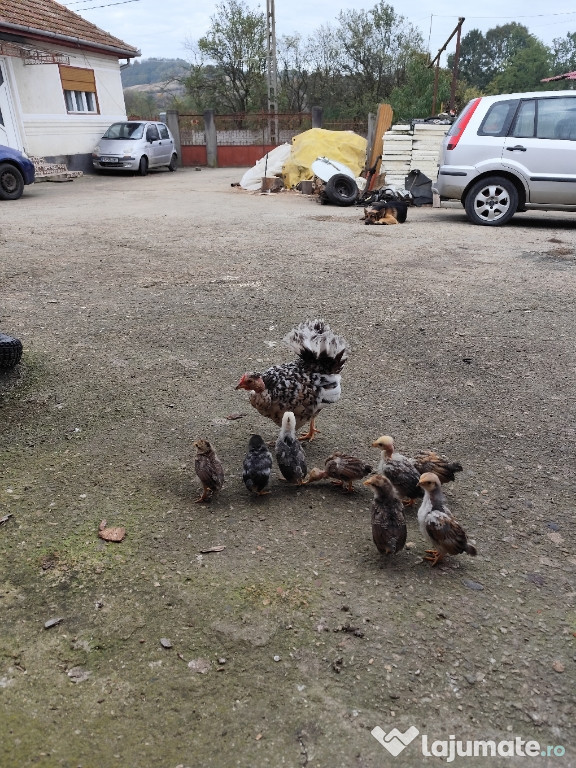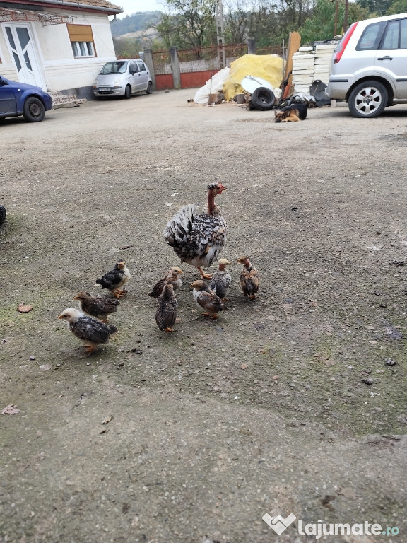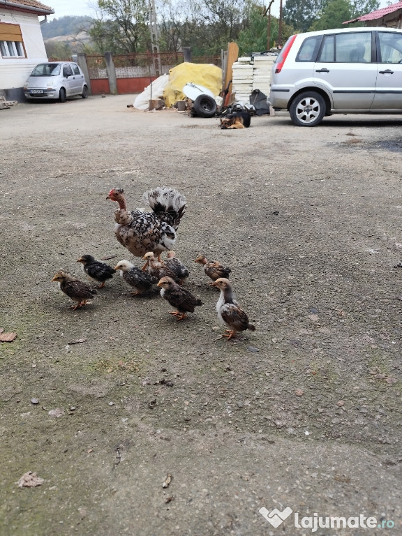 Găinușă pitică americană gât golaș cu 8 puișori. Citiți!!!