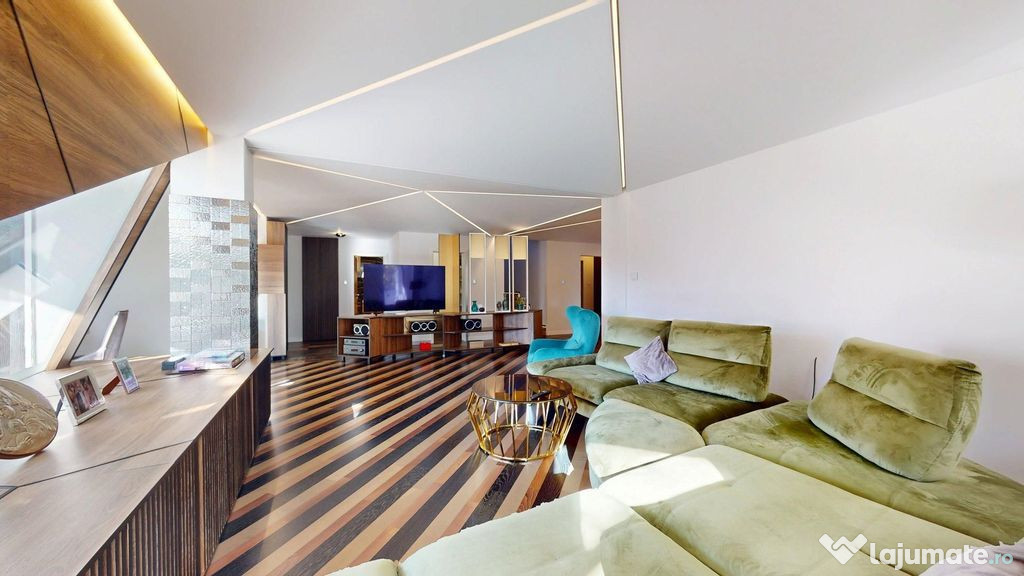 Ai două livinguri — unul pentru energie, conversații și serile cu prieteni, altul pentru liniște, film și momentele care contează.