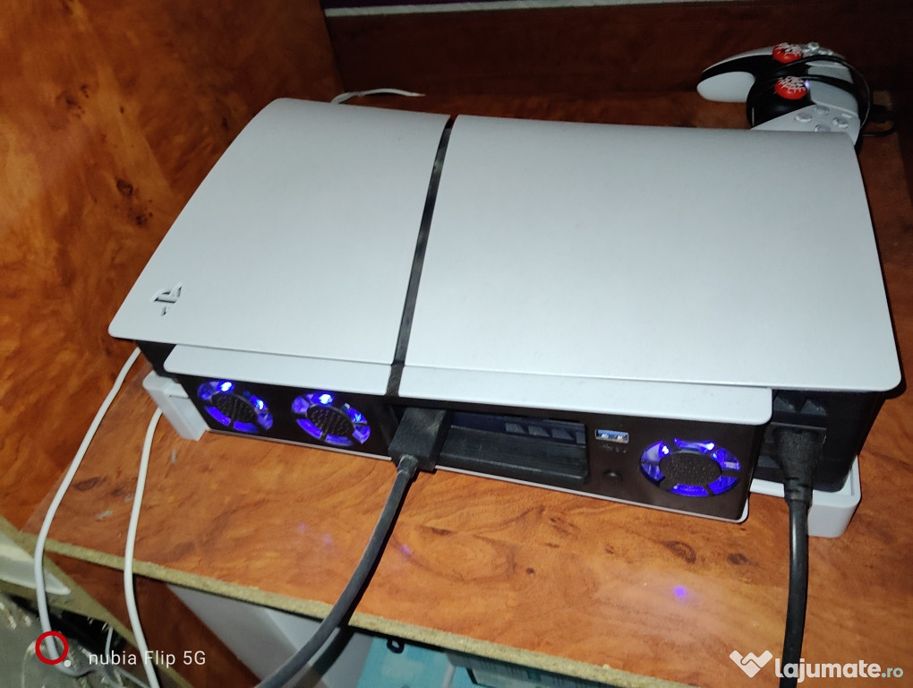 Vând PlayStation 5 digital slim în stare impecabilă. Perfect pentru pasionații de jocuri digitale.-ofer ventilator răcire spate