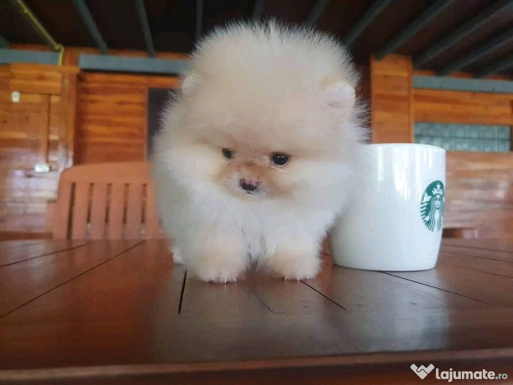 Disponibili pui de Pomeranian alb, rasă pură, cu blăniță deosebit de bogată și chip de ursuleț. Un băiețel și o fetiță, veseli, afectuoși și perfecți pentru orice familie iubitoare de animale. Părinții sunt cu pedigree, iar puii au toate actele în regulă, inclusiv vaccinurile și deparazitările la zi. Pot fi văzuți în timp real prin cameră video, iar livrarea este posibilă oriunde în țară. Pentru mai multe informații, contactați telefonic.Anuntul Pomeranian mini toy este adaugat de pe LaJumate.ro.