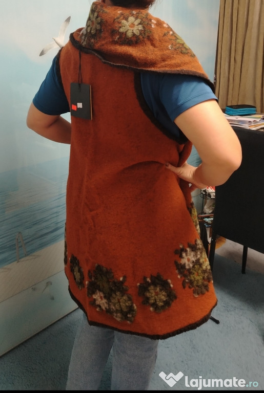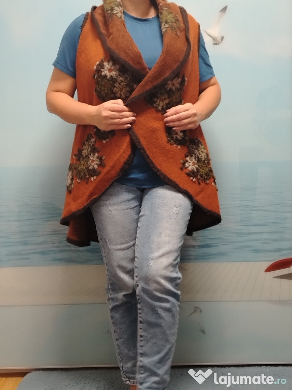 Vând poncho tricot călduros cu 2 fete, model deosebit, potrivit pentru serile friguroase ...