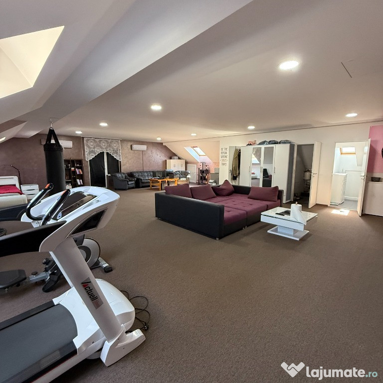 Mansardă: cameră mare, baie și balcon – perfectă pentru birou, sală fitness, hobby sau dormitor master