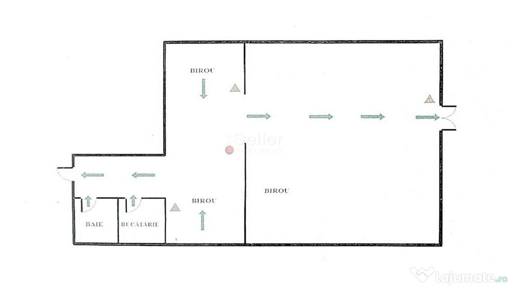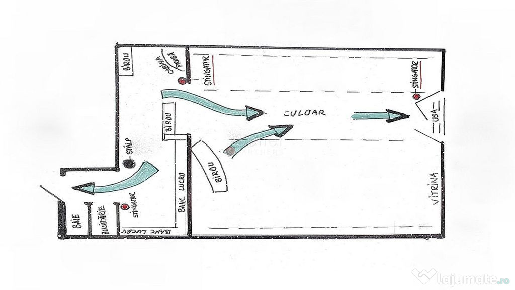 Spatiul este dispus pe 2 incaperi, 1 grup sanitar, chicineta si 2 cai de acces.