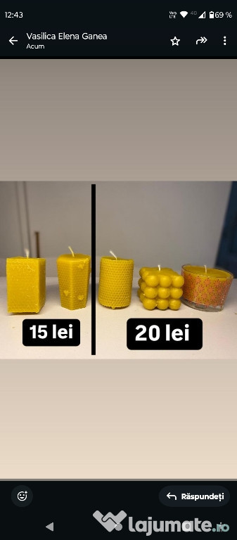 Ceară naturală, galbenă, filtrată (fără impurități) 250g 20 lei, 500g 35 lei, 1 kg 65 lei, peste 10 kg 60 lei kg