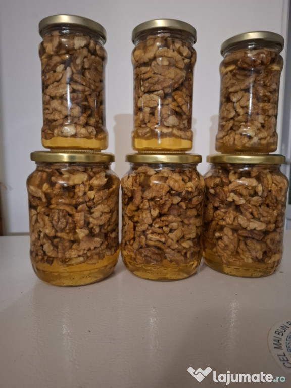Miez de nucă cu miere de salcâm 314ml 25 lei, 720ml 50 lei.