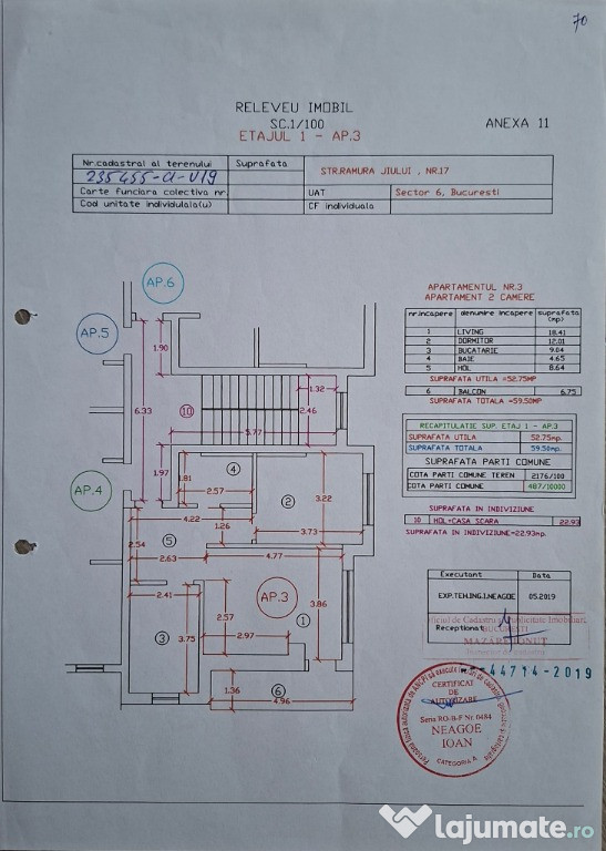 Suprafață utila 53 mp, suprafață totală 60 mp.