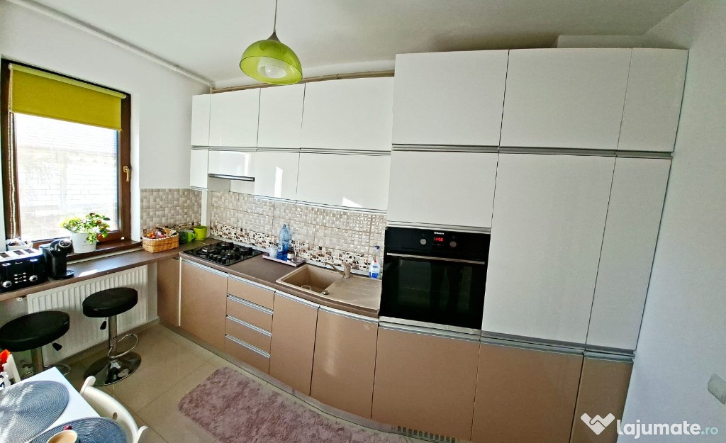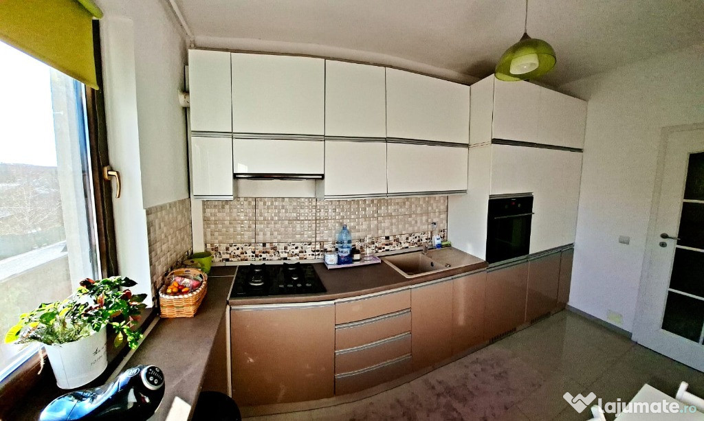 • Bucătărie complet mobilată si utilată. Apartamentul se vinde cu tot cu mobila făcută la comanda (fronturi din MDF de calitate) și electrocasnice: cuptor, aragaz, mașină spălat vase, frigider, centrala termica , mașină spălat rufe, chiuveta Franke, etc. Toate echipamentele menționate mai sus sunt incorporate.