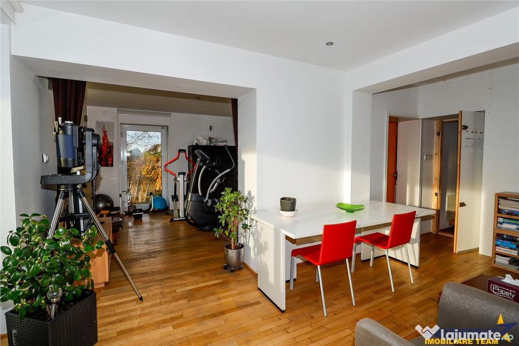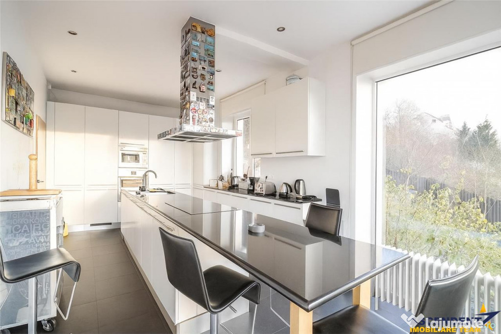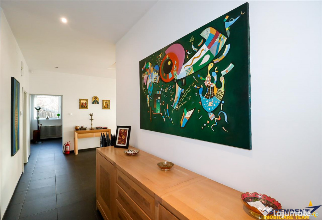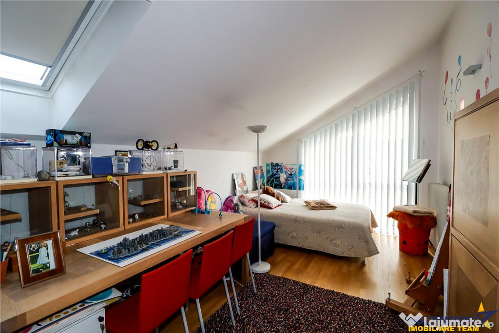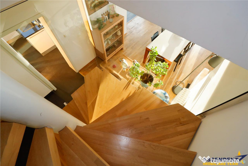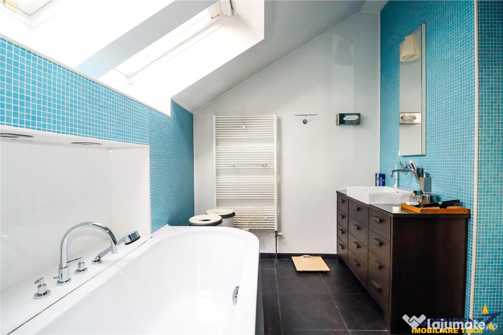 Proprietatea ofera o experienta de locuire diferita de orice ai intalnit pana acum. Cu aproape 100 mp de terase generoase, fiecare colt al casei te invita sa respiri libertate, lumina, aer curat si energie inaltatoare. Livingul vast si luminos te intampina cu o atmosfera calda pentru momente dunice ale vietii, intr-un cadru in care orasul pare ca se aseaza la picioarele tale.