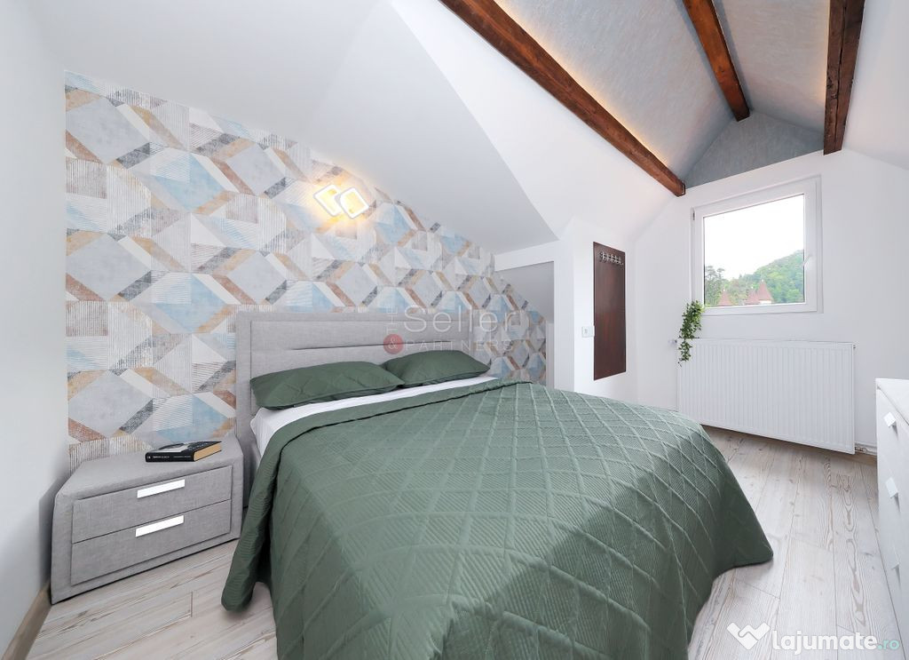 Imobilul este situat intr-un peisaj pitoresc, cu rau in gradina, la mai putin de 500 m de Castelul Bran.