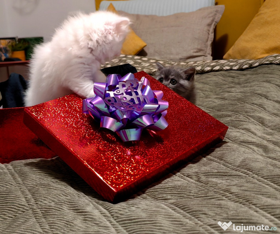 Doi dintre cei trei puiuti ai familiei noastre isi cauta o familie permanenta. Femela British Longhair si mascul British shorthair. Sunt nascuti pe 18 noiembrie si vor fi gata sa plece din cuib incepand cu 15 ianuarie, atunci cand vor fi pregatiti.Anuntul Pui de British albi este adaugat de pe LaJumate.ro.