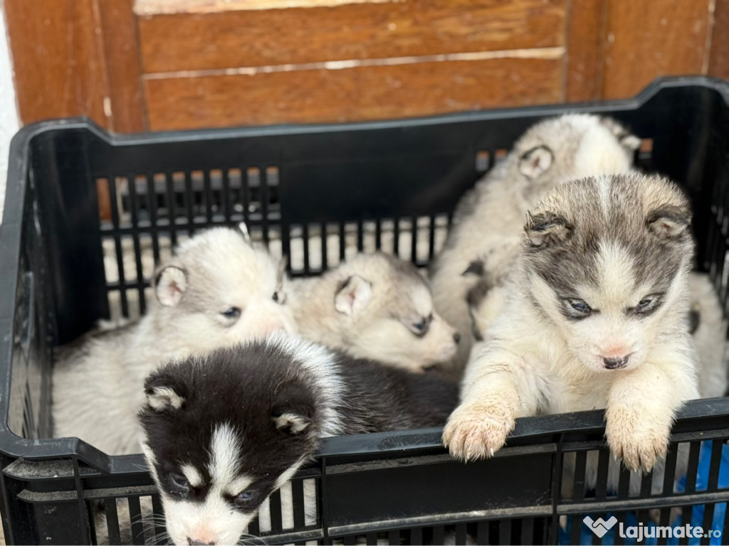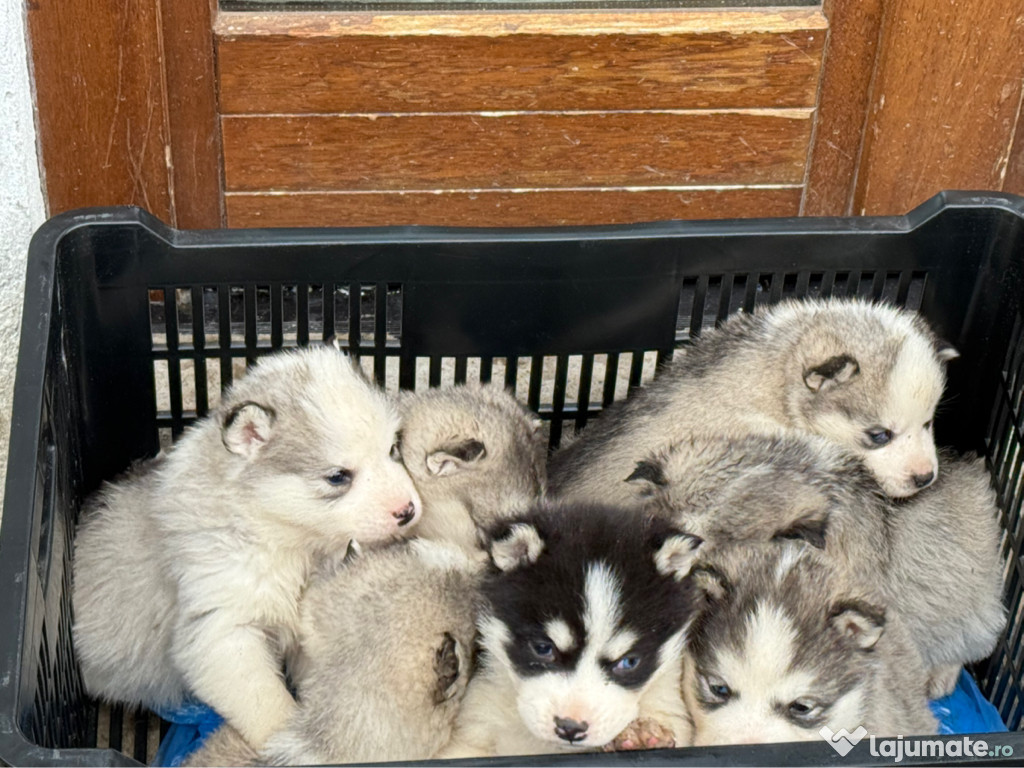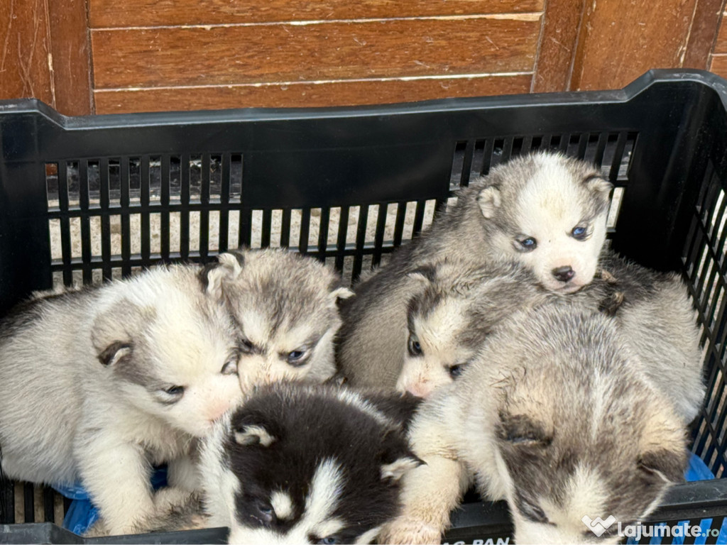 Ofer spre vânzare 7 căței Husky Siberian, sănătoși, jucăuși și foarte afectuoși.Puii provin din părinți frumoși, bine îngrijiți, cu temperament echilibrat, rasă pură (huscky Siberian).Sunt crescuți în familie, obișnuiți cu oamenii și copiii.