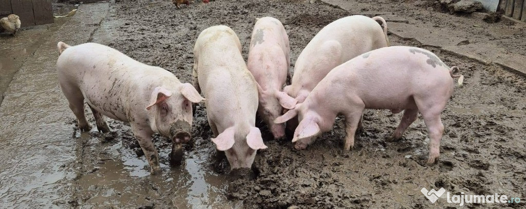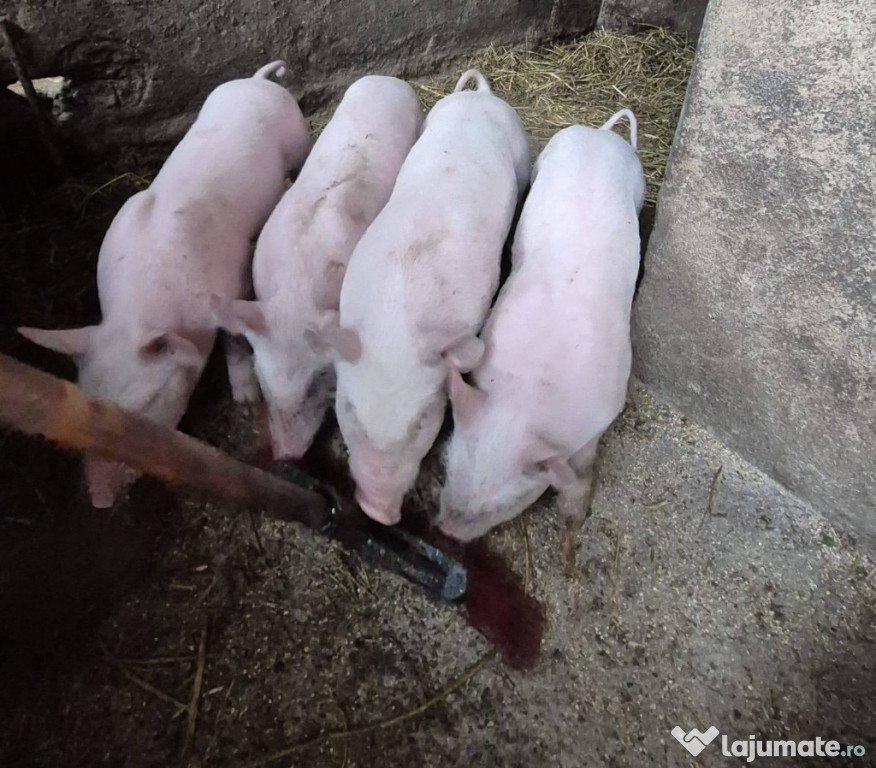 Purcei de vanzare, intre sase saptamani si 4 luni, rasa Landrace Sunt disponibile noua bucăți.Preț 350 (cei de sase saptamani) si 1000 lei (patru luni).