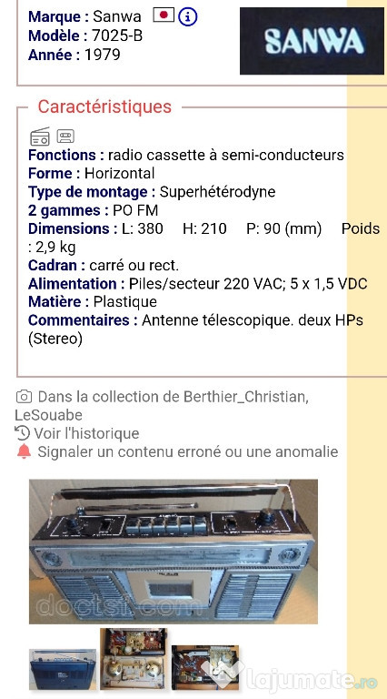 functioneaza doar pe radio, partea de casetofon este înțepenită.Anuntul Radio casetofon SANWA 7025 este adaugat de pe LaJumate.ro.