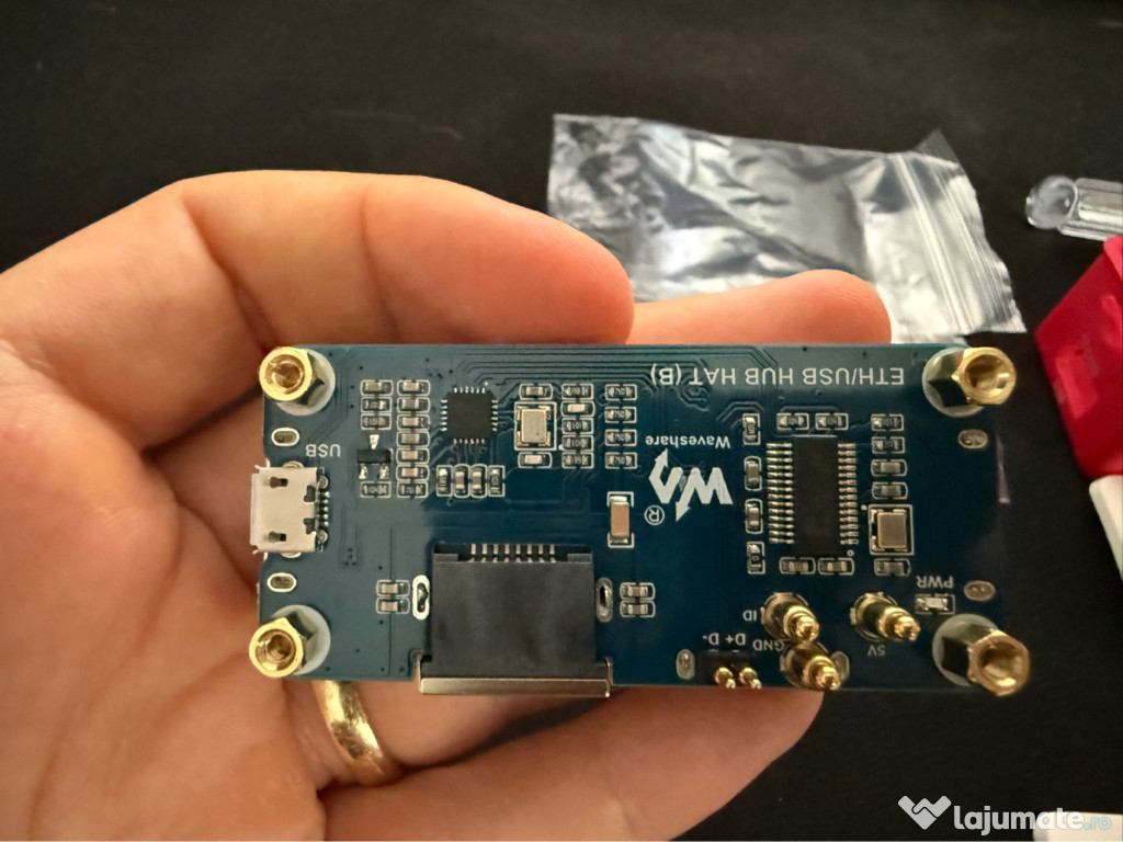 The ETH/USB HUB HAT (B) is an Ethernet and USB HUB designed for Raspberry Pi, providing 1x RJ45 Ethernet port and 3x USB 2.0 ports. It's pogo pin design is specialized for Zero series, while the onboard normal USB connector can be used to connect with other Raspberry Pi boards through a USB cable.Il vand deoarece am renuntat la Raspberry Pi Zero 2W ZERO 2W si acest HUB HAT nici macar nu am apucat sa-l folosesc ! Am trecut de la acest RP la Docker image pe NAS-ul meu. Se vinde FIX cu cat l am luat si am asteptat 1 luna dupa el !