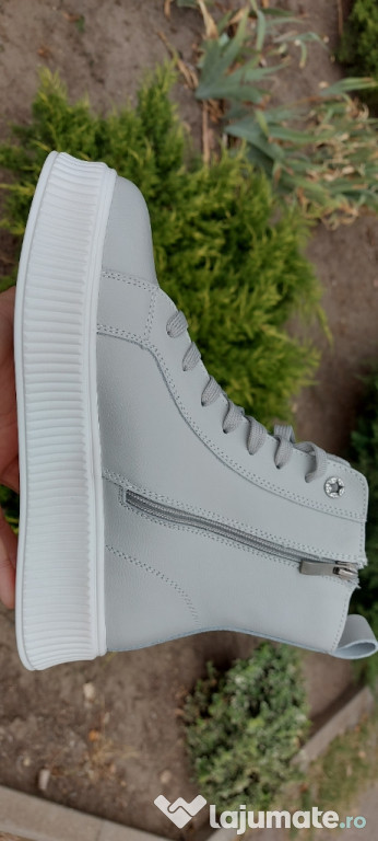 Ghete elegante pentru femei, din piele gri, disponibile în mărimile 38-39. O alegere perfectă pentru ...