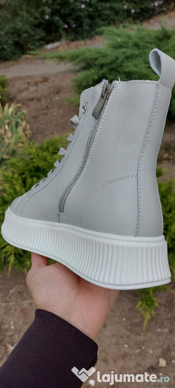 Ghete elegante pentru femei, din piele gri, disponibile în mărimile 38-39. O alegere perfectă pentru a completa orice ținută casual sau office.OFERTA Ghete din piele 38-39