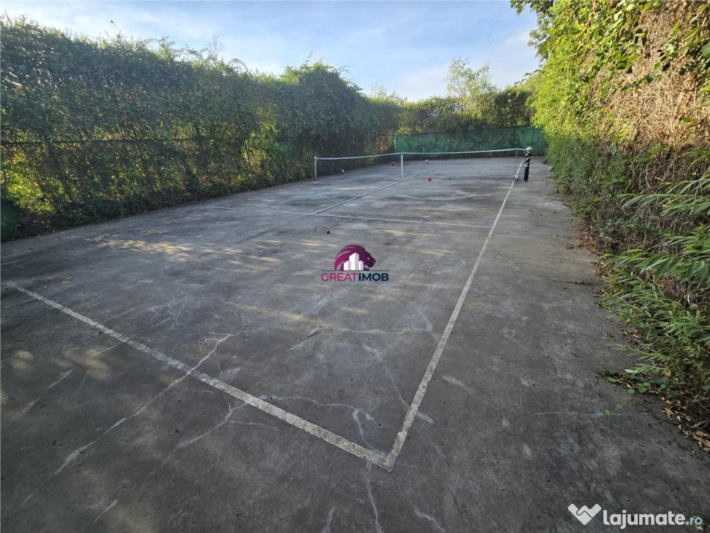 Piscina interioara, accesibila direct din casa, are dimensiuni generoase de 13 x 3 metri,cu adancime de la 1.5 la 2.2 m, este inconjurata de o zona de relaxare cu sezlonguri, ideala pentru utilizare din primavara pana toamna tarziu. Din zona piscinei se poate iesi pe o terasa fermecatoare, inconjurata de vegetatie luxurianta, cu vedere spre terenul de tenis.