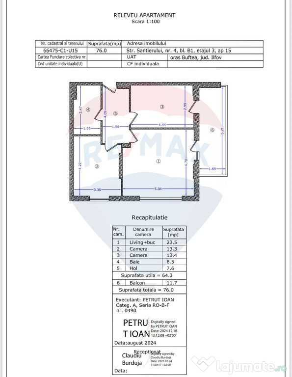 Vă prezentăm un apartament spațios și modern, cu 3 camere decomandate, luminoase, situat într-un imobil nou de pe Strada Șantierului, în zona de dezvoltare activă a orașului Buftea.Locuința are o suprafață totală de 76 mp, inclusiv balcon (11,7mp), și este amplasată la etajul 3 al unui bloc cu 4 niveluri, dotat cu lift.