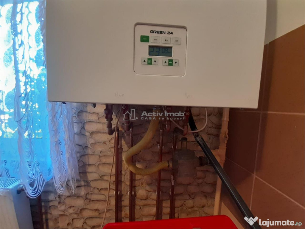 - Apartamentul detine centrala termica noua (de doar cateva luni) cu instalatie pe cupru, are geamuri de termopan la toate ferestrele, are aplicat parchet in stare foarte buna in camere, gresie si faianta in bucatarie si baie, iar usa de la intrare este din metal;