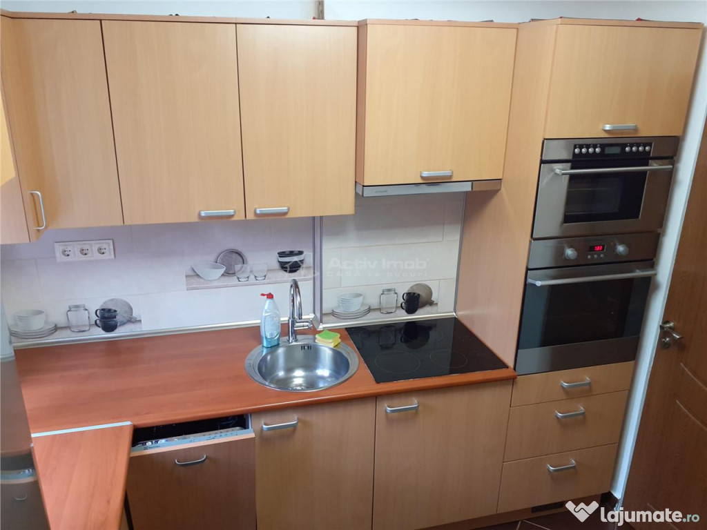 Se inchiriaza complet mobilat si utilat (plita electrica, cuptor electric, frigider, masina de spalat rufe, masina de uscat rufe, cuptor cu microunde), exact asa cum se observa in fotografii.