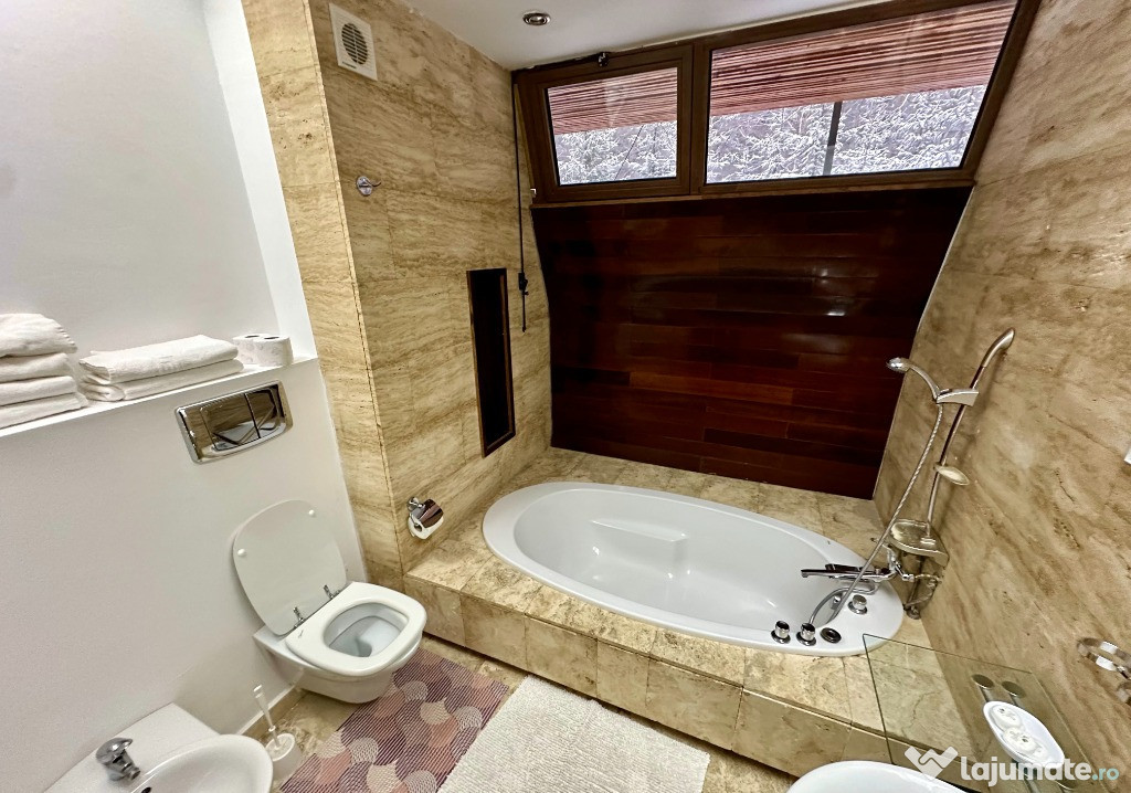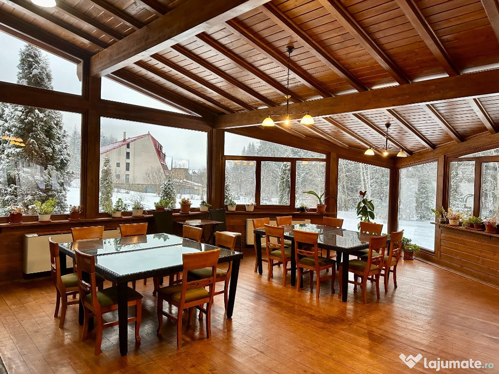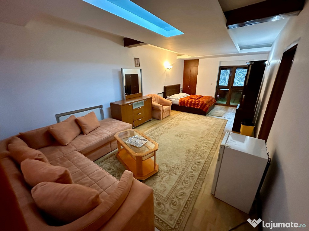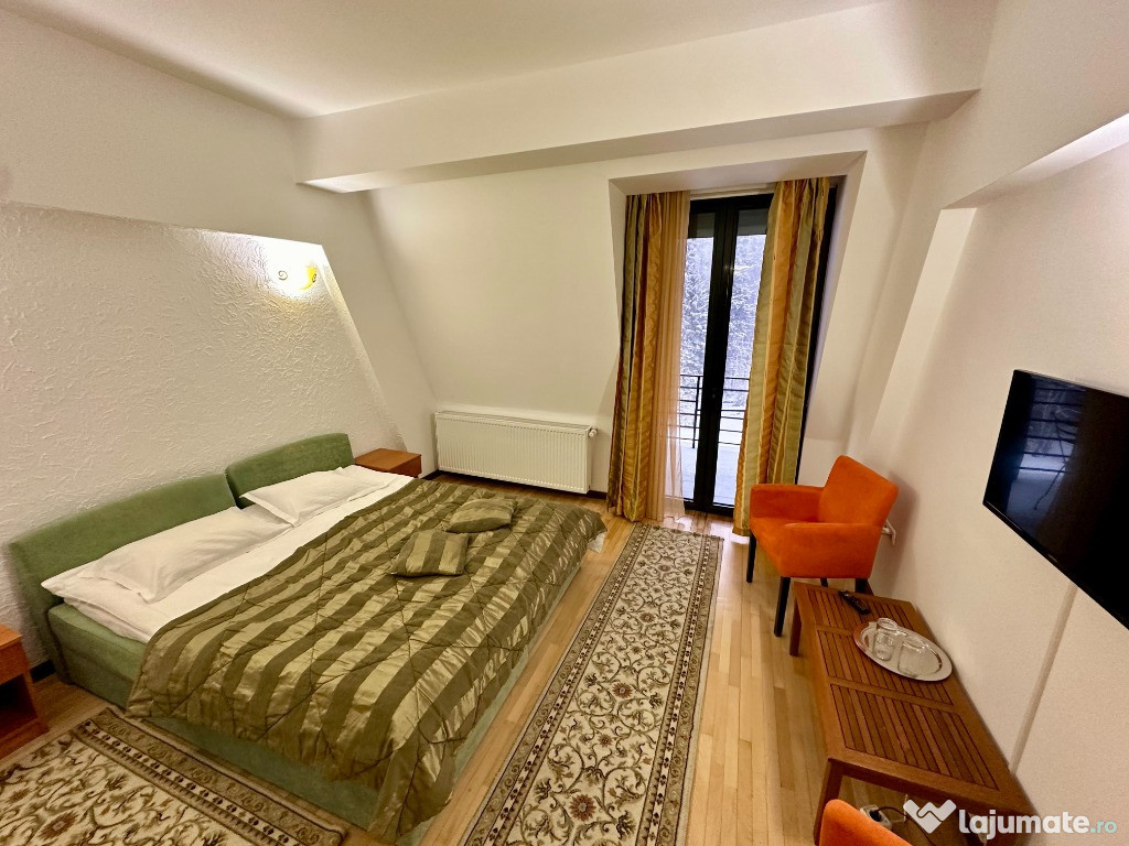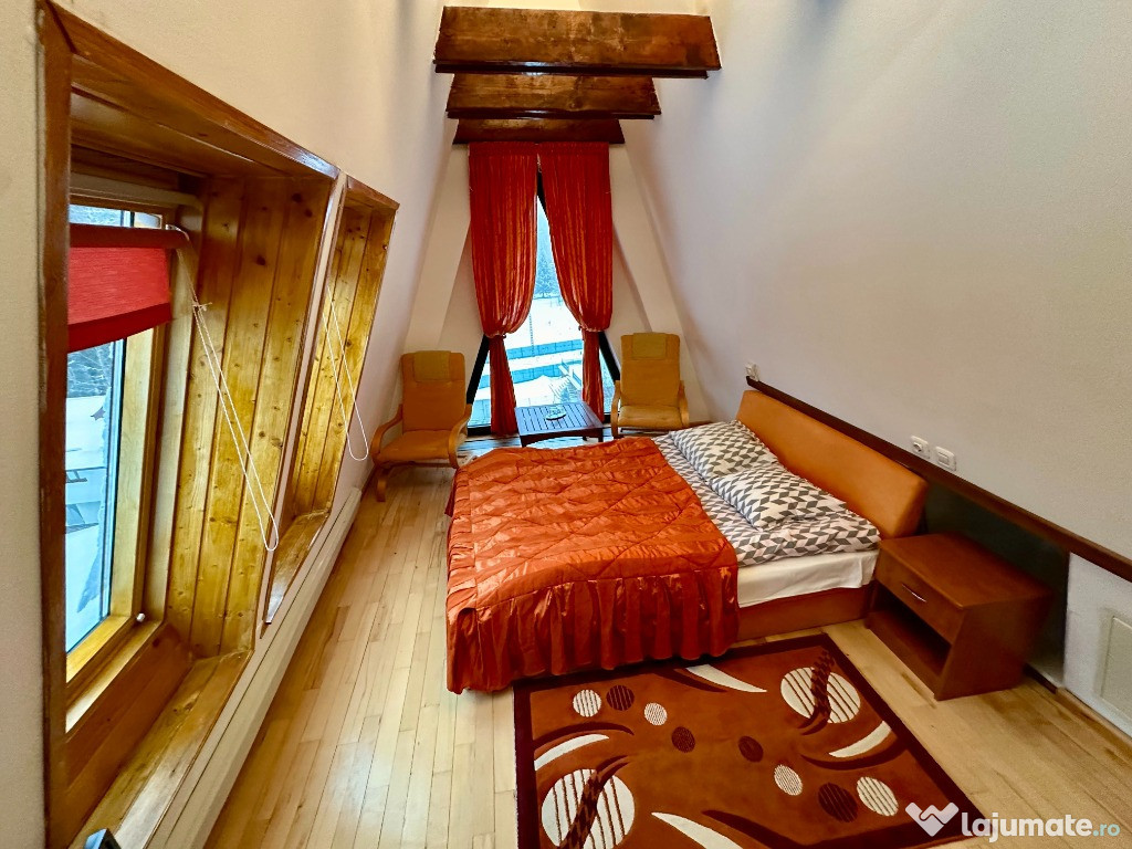 Inchiriez Pensiunea Rasnoava din Predeal pentru revelion 2ascuns Pensiunea se afla in Predeal pe drumul inspre Paraul Rece. Are o capacitate maxima de cazare de 32 de persoane compusa astfel: 4 camere duble ( pat king size 180x200 si baie proprie cu dus), 4 camere triple ( pat king size 180x200 + pat de o persoana si baie proprie cu dus), 2 apartamente (4 persoane fiecare in 2 dormitoare cu pat king size 180x200 si baie proprie cu cada) si 2 camere duble la mansarda (pat queen size 160x200 si o baie cu dus pe hol). Pensiunea are la parter 2 livinguri/sali de mese de circa 150 mp fiecare in care se poate organiza petrecerea si o zona de gratar/terasa la exterior dar acoperita. Bucatarie complet echipata si utilata ce este pusa la dispozitie. Pensiunea este dotata cu espressor, fierbator, frigidere, parcare, vesela, ustensile de gatit, pahare, tacamuri, etc. Pensiunea se da doar integral unui singur grup pe perioada anului nou indiferent de gradul de ocupare iar pretul este de 2000 euro pe seara si sa da pe un sejur de minim 4 nopti. Pentru orice alte detalii si intrebari ma puteti contacta la nr. de telefon din anunt.Anuntul Revelion Pensiunea Rasnoava 2026 este adaugat de pe LaJumate.ro.