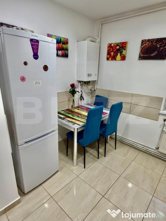 Blitz propune spre vanzare un apartament spațios și bine compartimentat, cu suprafața de 48 mp, situat la etajul 3/4, într-o zonă liniștită și ușor accesibilă. Locuința se vinde exact cu tot ce se vede în poze, fiind complet mobilată și utilată, ideală pentru mutare imediată sau investiție.✔ Centrală proprie – eficiență și confort