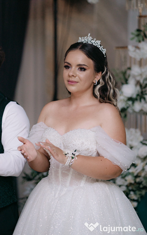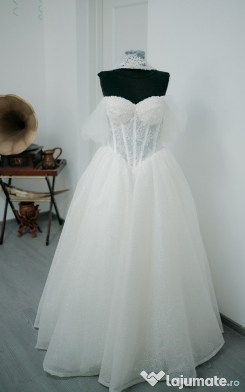 Rochia a fost purtată o singură dată,apoi curățată profesional.Reglabila din corset.Ofer cadou coroniță ,cerc +alte accesoriiAnuntul Rochie de mireasă este adaugat de pe LaJumate.ro.