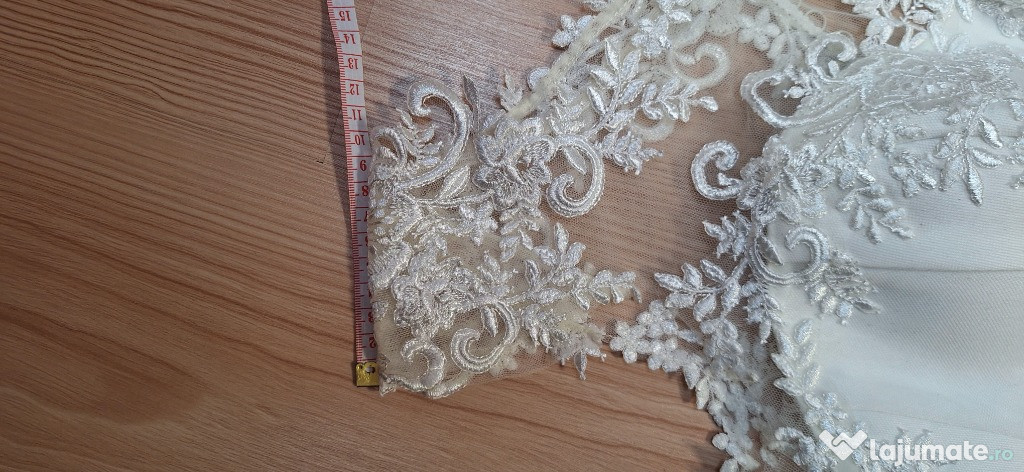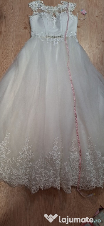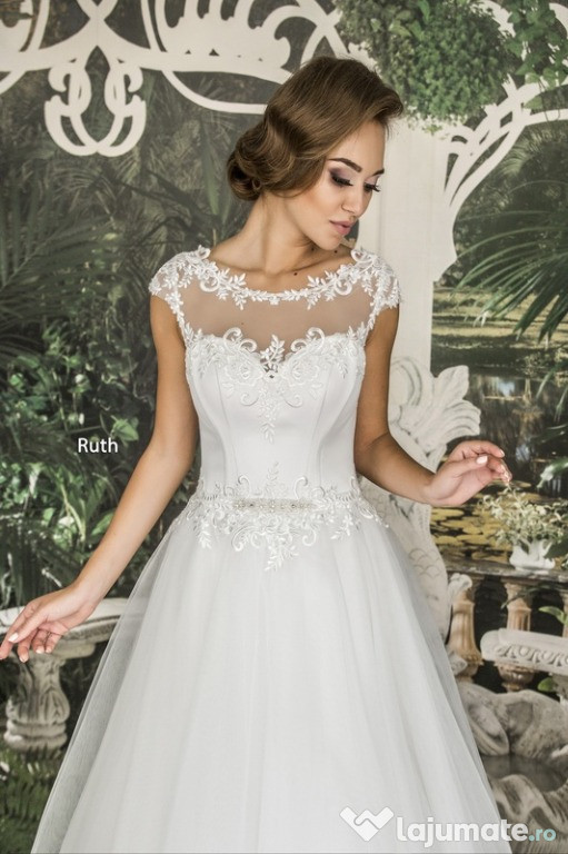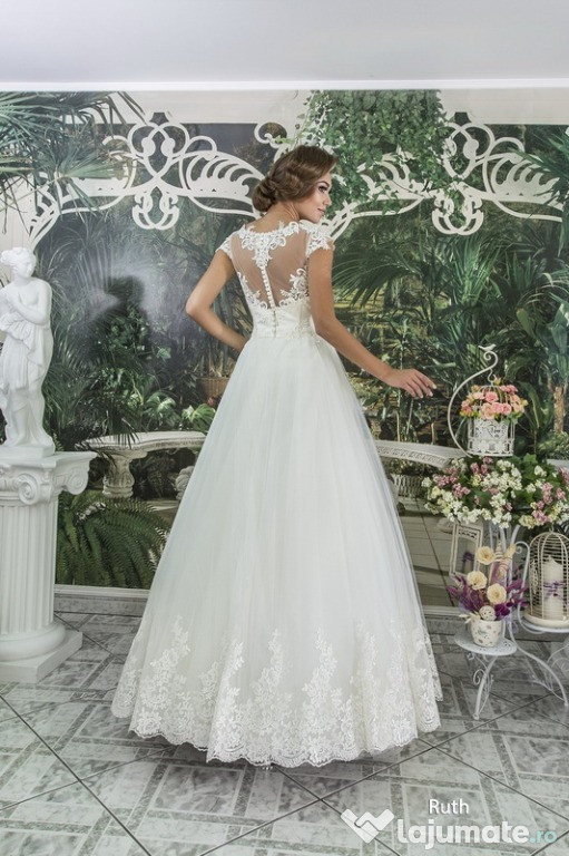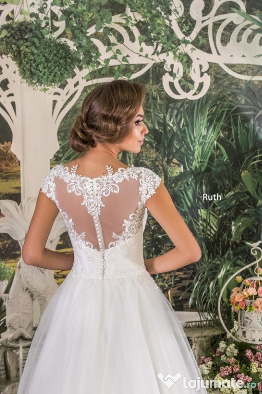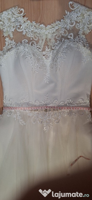 Rochie de mireasa mărimea 38 achizitionata de la magazinul Mariage a Paris din București. A fost folosita o singura data, nu are urme de uzura. Ca si dimensiuni lungime de 145-146 cm, talie 74 -75 cm, bust aprox 82 cm. Pot oferi mai multe detalii pe whatsapp.Anuntul Rochie de mireasa model Ruth este adaugat de pe LaJumate.ro.