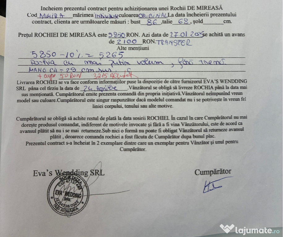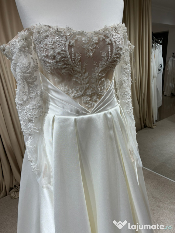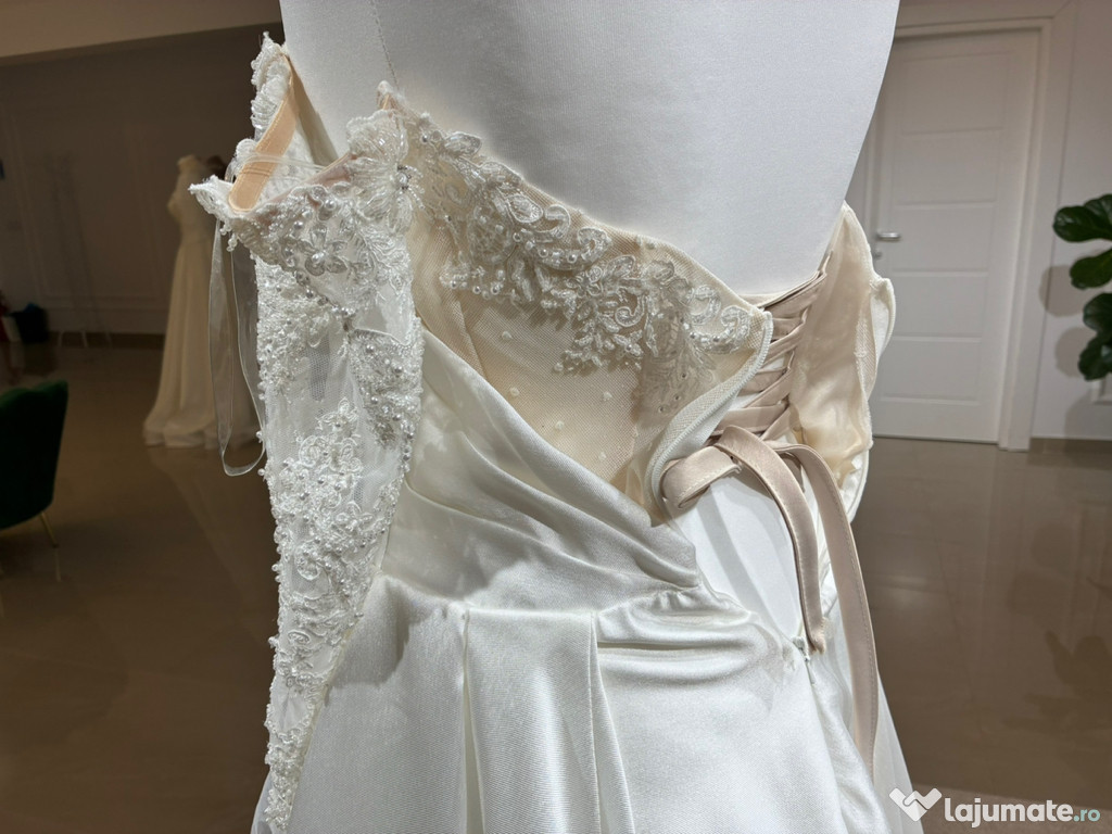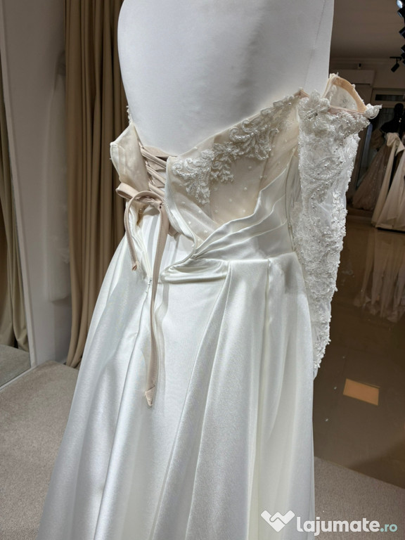 Rochie de mireasa noua, realizata pe comanda. Rochia este noua, nu a fost purtata, doar probata. Se vinde doar in Iași, pentru a putea fi probată. Toate detaliile despre dimensiuni sunt in ultima poza. Se potriveste pentru o persoana slabuta, inaltimea de 1,55cm cu tocuri de 7-10cm.Anuntul Rochie de mireasă, nouă, necununată. este adaugat de pe LaJumate.ro.