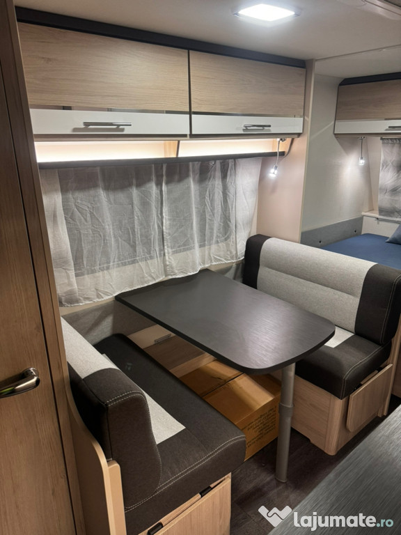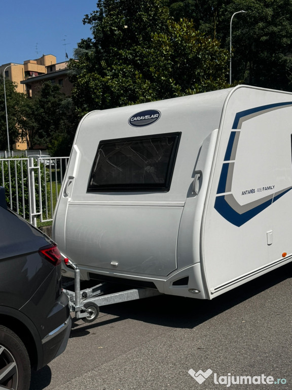 Vând rulota Caravelair Antares family an 2021 nouă ( nu a fost folosită) ptr 6 persoane, compusa din : 2 paturi în spate , pat matrimonial în fata și masa se transforma în pat , baie cu dus și WC cu caseta , boiler 50 L pe curent ptr încălzit apa , frigider 100 L, aragaz nou , roata de rezerva nouă , și rotile de pe rulota sant noi , cum nu a fost uzata , adusa recent din Franța , cu acte în regula , programare RAR pe 15 Dic. mai multe info la nr tel ascunsAnuntul Rulota 2021 /6 pers Noua este adaugat de pe LaJumate.ro.