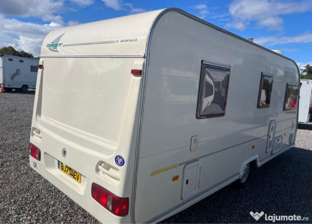 Se vinde Rulotă AVONDALE bine utilată din 2004, MMA 1300KG, 6 plus persoane• Boiler pentru încălzirea apei pe gaz-electric Truma și pentru încălzirea rulotei electric și pe gaz cu termostat