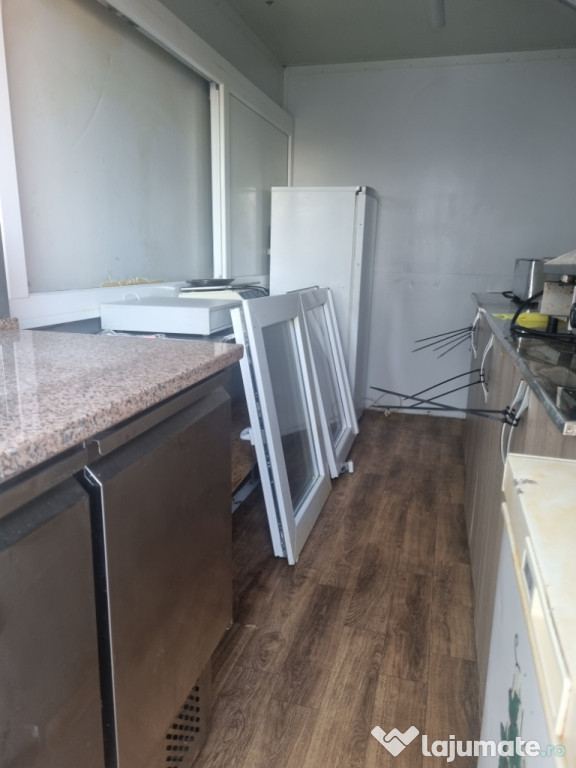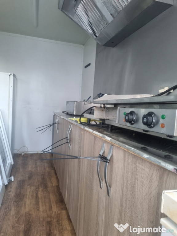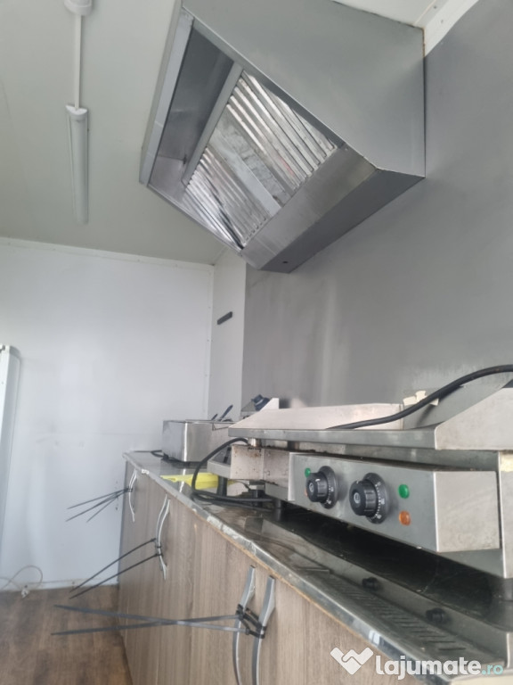 Vând rulota fast-food echipata cu: Masa rece cu saladete Plita pe inducție Plita electrica Frigider ...