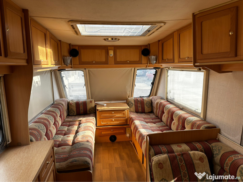 rulotă pliabilă 4 persoane de dormit cu terasă exterioară dotări aragaz cuptor chiuvetă frigider ...