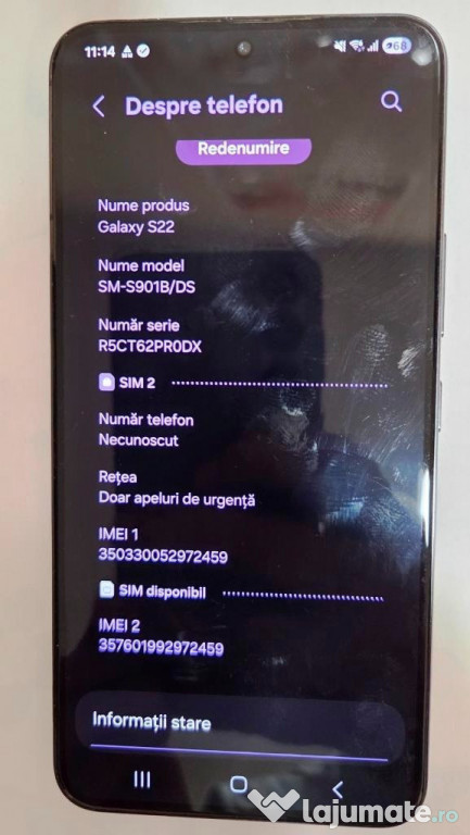 Vând Samsung Galaxy S22 5G Dual SIM in stare foarte buna de funcționare. Capacitate stocare 128GB, RA ...